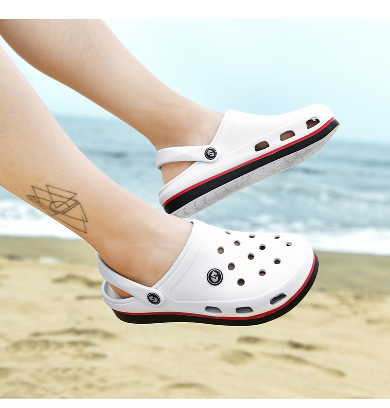 Step into comfort and style this summer with our Summer Slippers Men's Hole Shoes Sandals. Crafted with a lightweight and durable EVA upper and sole, these sandals are designed to provide optimum comfort for your feet while keeping you cool and stylish. Available in three classic colors: white, black, and blue, these sandals are perfect for the beach, poolside lounging, or casual outings.